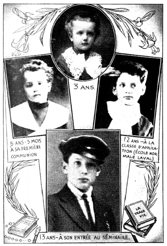 Quatrième de huit enfants, il provient d’une famille très pieuse. Il aura un frère prêtre, ainsi que deux sœurs religieuse dans la congrégation Notre-Dame. Il a fait sa première communion à cinq ans et demi, ce qui est encore rare à l’époque. Ensuite, ce petit apôtre de l’Eucharistie cherche ardemment à communier tous les jours.